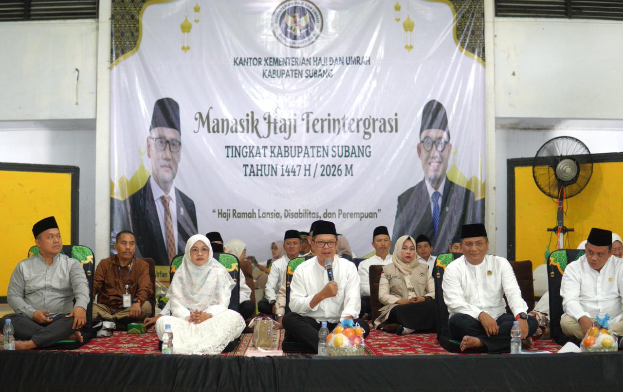 SUBANG.pesanjabar.com – Wakil Bupati Subang, Agus Masykur Rosyadi, didampingi Wakil Ketua TP PKK Subang, Ega Agustine Rosyadi, menghadiri sekaligus membuka secara resmi kegiatan Bimbingan Manasik Haji tingkat Kabupaten Subang Tahun 2026 (17 Syawal 1447 H). Kegiatan tersebut digelar di Aula Haji Kabupaten Subang pada Minggu (05/04/2026).