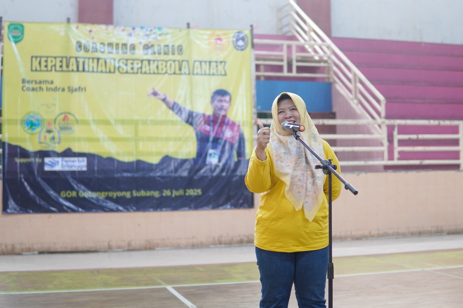 SUBANG.pesanjabar.com – Pada hari Sabtu 26 Juli 2025, Kepala Dinas Pendidikan dan Kebudayaan (Disdikbud) Kabupaten Subang, Dra. Nunung Suryadi, M.Si, menegaskan pentingnya penguatan pembinaan olahraga usia dini berbasis karakter dalam sambutannya pada kegiatan Coaching Clinic Sepak Bola Anak, yang digelar di GOR Gotong Royong, Sabtu (26/7). Kegiatan ini digagas oleh Kelompok Kerja Guru Olahraga (KKGO) dan MGMP PJOK Kabupaten Subang, dengan menghadirkan pelatih nasional Coach Indra Sjafri sebagai narasumber utama.