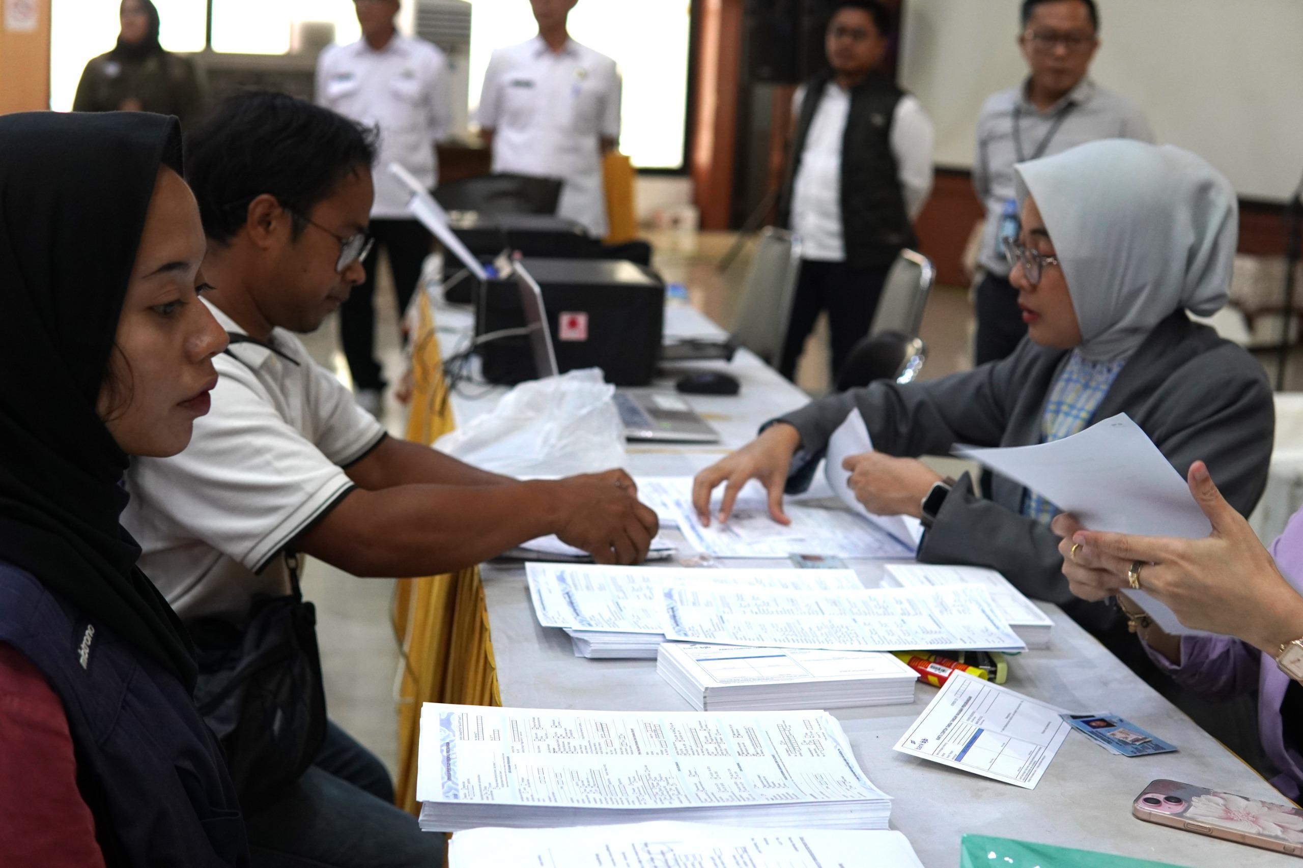 Sekda Subang H. Asep Nuroni menyerahkan rekening bantuan kepada pedagang eks bangunan liar di Ciater, sebagai bagian dari program penguatan ekonomi masyarakat terdampak penertiban.