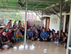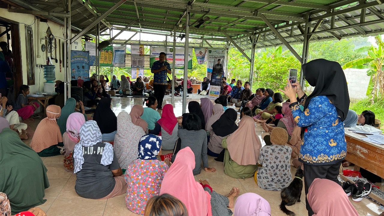 📸 Suasana kegiatan begitu hidup dan interaktif. Dalam foto dokumentasi, tampak para peserta duduk melingkar di teras rumah warga, memperhatikan materi yang disampaikan dengan penuh perhatian. Poster edukasi dan banner informasi tertata rapi di sekeliling lokasi, sementara seorang peserta tampak mengabadikan momen menggunakan ponsel pintar.