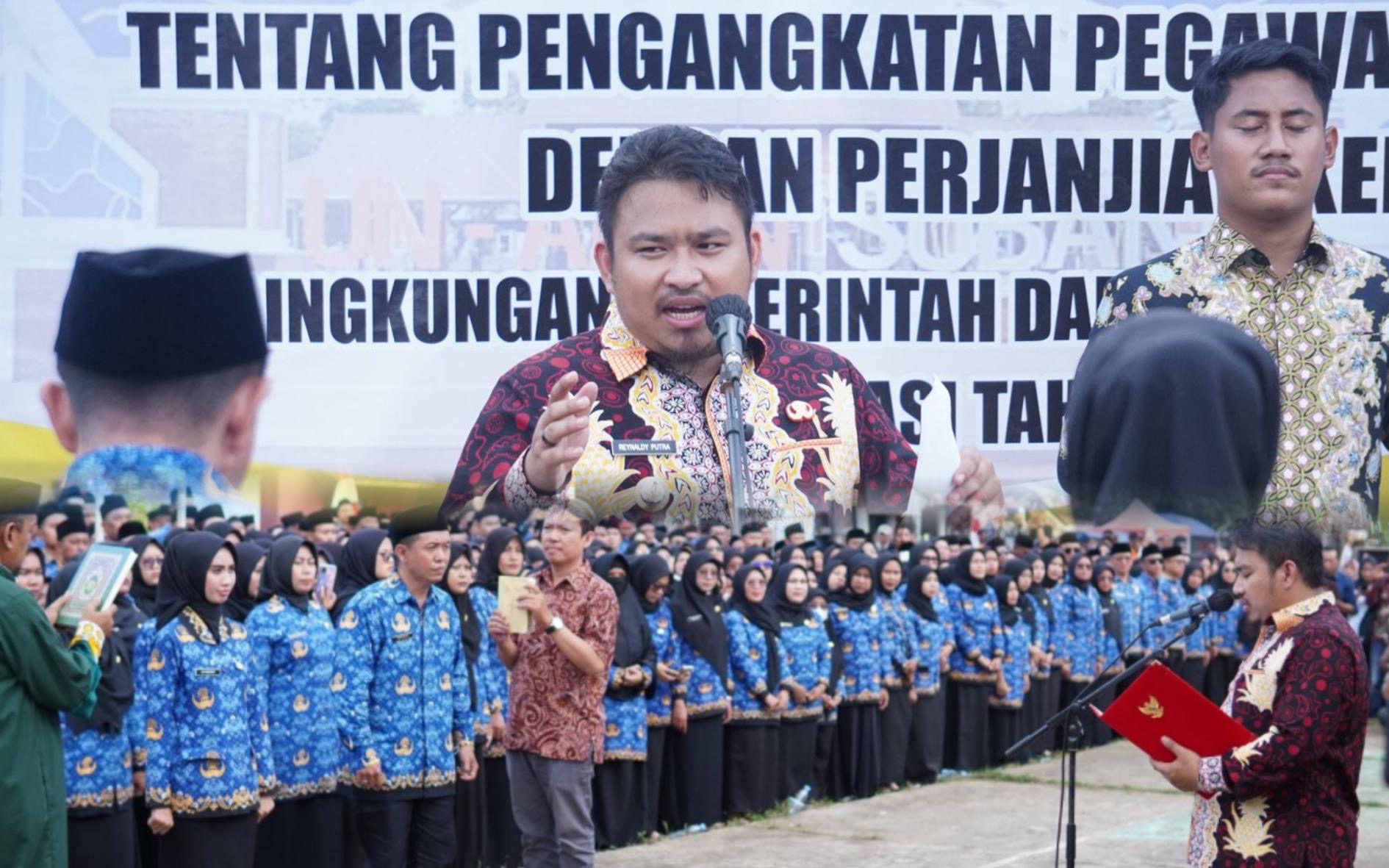 Bupati Reynaldy, atau yang akrab disapa Kang Rey, dalam sambutannya menegaskan bahwa menjadi ASN bukan hanya soal status, tetapi amanah besar yang melekat dengan tanggung jawab pelayanan publik secara profesional dan berintegritas.
