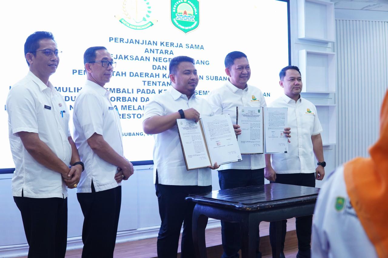 SUBANG.pesanjabar.com – Dalam upaya memperkuat tata kelola pemerintahan yang transparan dan berintegritas, Bupati Subang, Reynaldy Putra Andita Budi Raemi, S.IP., bersama Kepala Kejaksaan Negeri Subang, Dr. Bambang Winarno, S.H., M.H., menandatangani Kesepakatan Bersama (MoU) antara Pemerintah Daerah Kabupaten Subang dan Kejaksaan Negeri Subang terkait penanganan masalah hukum di bidang perdata dan tata usaha negara.