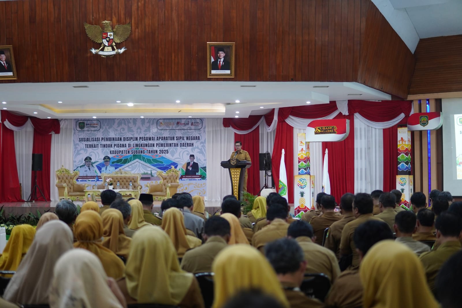 SUBANG.pesanjabar.com – Sosialisasi Pembinaan Disiplin Pegawai ASN Terkait Tindak Pidana di Lingkungan Pemkab Subang Tahun 2025 resmi dibuka Wakil Bupati Subang, Agus Masykur Rosyadi (Kang Akur), pada Selasa (23/9) di Aula Oman Syahroni, Kantor Bupati Subang.