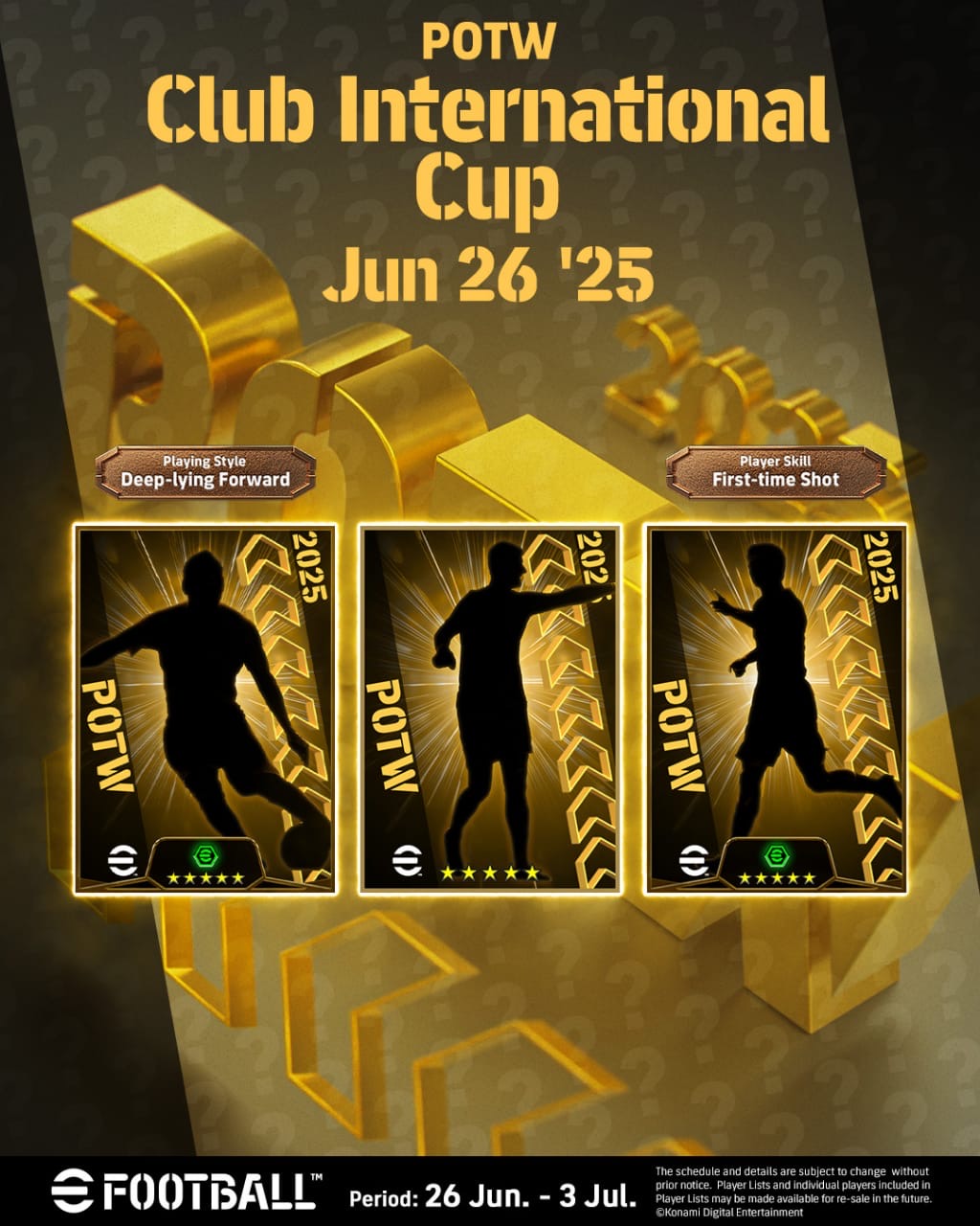 Meskipun identitas pemain masih dirahasiakan, siluet yang ditampilkan memperlihatkan tiga pemain bintang yang akan mendapatkan peningkatan rating spesial. Salah satunya adalah pemain dengan gaya bermain Deep-lying Forward, serta pemain lain yang dibekali kemampuan andalan First-time Shot.
