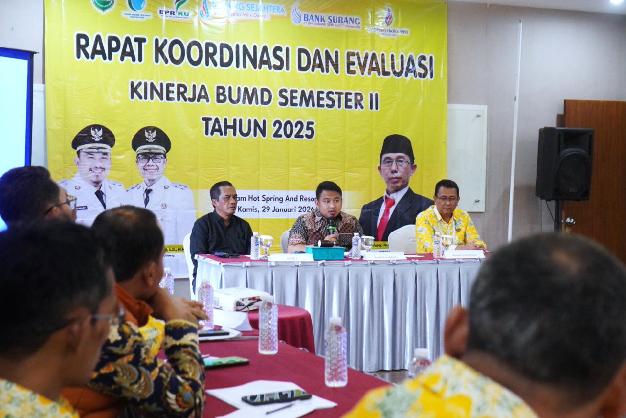 SUBANG.pesanjabar.com – Bupati Subang, Reynaldy Putra Andita, menghadiri Rapat Koordinasi dan Evaluasi Kinerja Badan Usaha Milik Daerah (BUMD) Semester II Tahun 2025 yang digelar di Sari Alam Hot Spring and Resort, Kamis (29/01/2026).