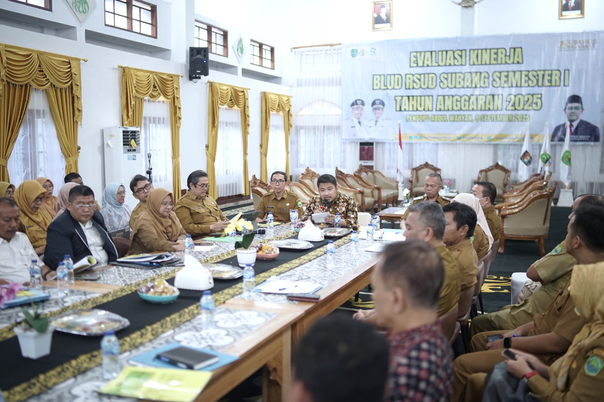 SUBANG.pesanjabar.com – Bupati Subang, Reynaldy Putra Andita Budi Raemi menghadiri Rapat Evaluasi Kinerja Badan Layanan Umum Daerah (BLUD) RSUD Subang Semester I Tahun Anggaran 2025 yang digelar di Pendopo Abdul Wahyan, Selasa (9/9/2025). Kegiatan ini diikuti oleh Sekda Subang H. Asep Nuroni, jajaran Asisten Daerah, Kepala OPD terkait, Tim TP2D, dan Dewan Pengawas RSUD Subang.
