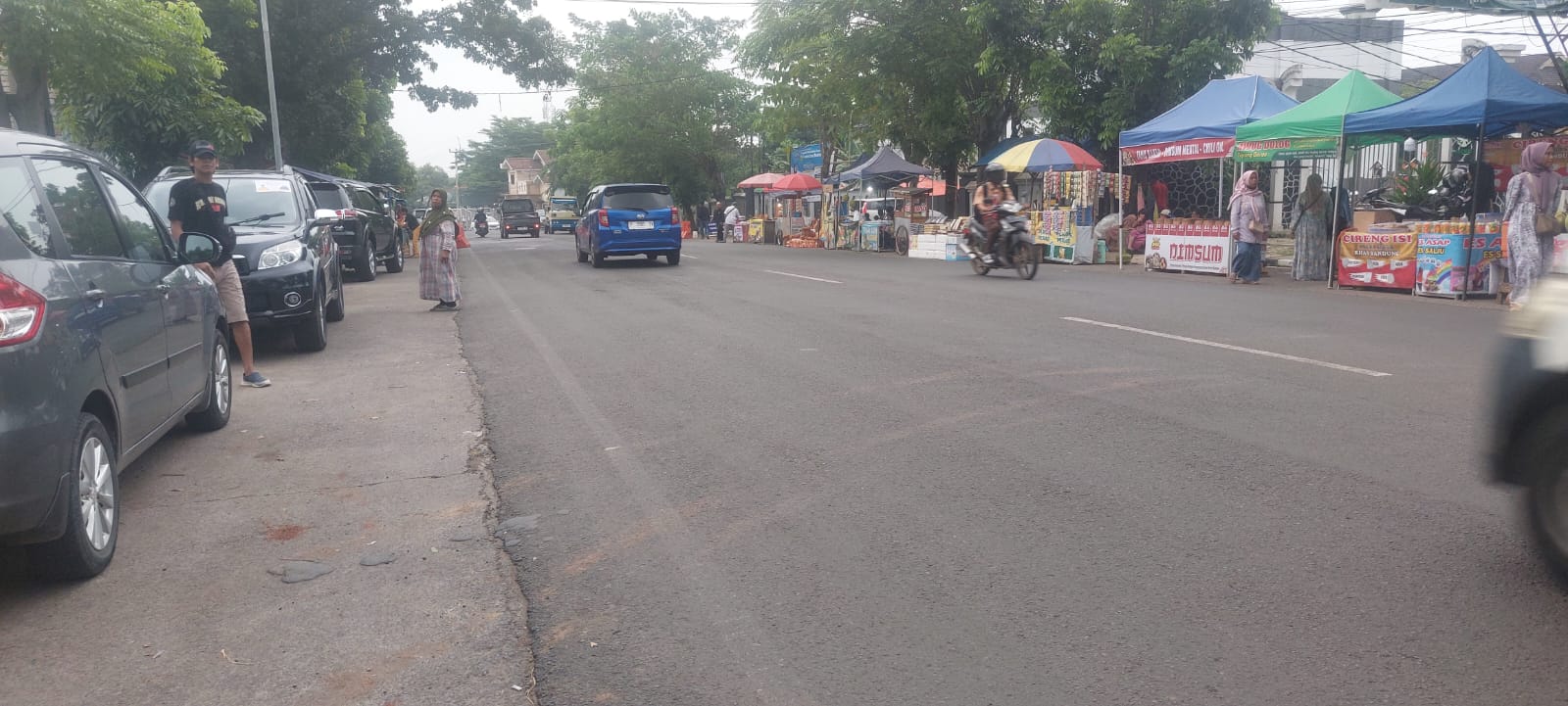 Selain keluarga jemaah, para pedagang kaki lima turut meramaikan suasana. Tenda-tenda berwarna-warni berjejer di pinggir jalan, menjajakan berbagai makanan, minuman, hingga balon dan mainan anak-anak. Nuansa seperti pasar dadakan pun tercipta, menambah warna dalam momen yang sakral ini. **
