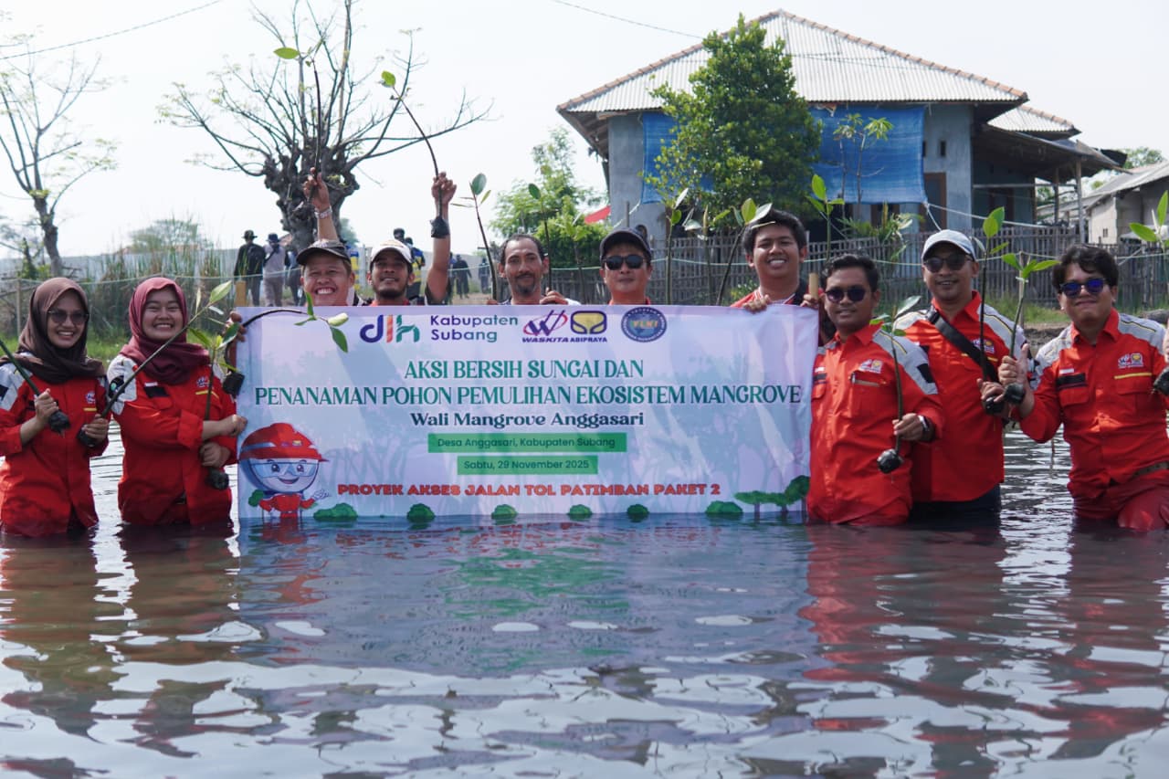 SUBANG.pesanjabar.com – 29 November 2025. Aksi bersih sungai dan penanaman pohon mangrove kembali digelar sebagai upaya pemulihan ekosistem pesisir di Desa Anggasari, Kabupaten Subang. Kegiatan ini dilaksanakan melalui kolaborasi antara Dinas Lingkungan Hidup Kabupaten Subang, Yayasan Lingkungan Nusantara Indah (YLNI), PT Waskita Abipraya, Perum Jasa Tirta II (PJT II) Seksi Binong, serta Pemerintah Desa Anggasari.