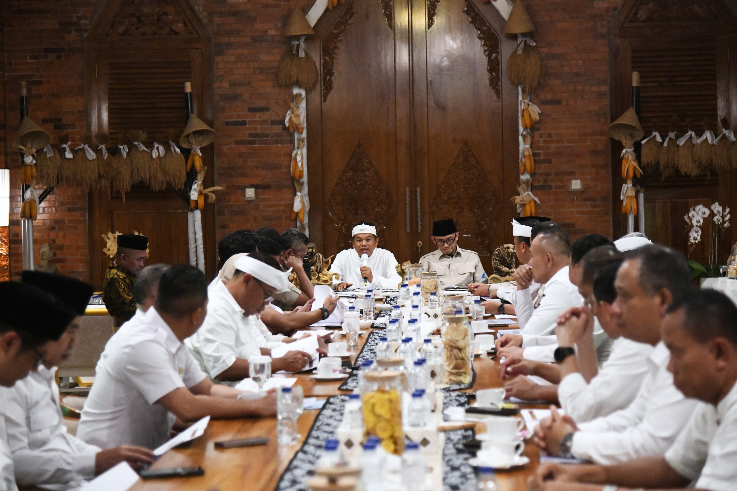 SUBANG.pesanjabar.com – Gubernur Jawa Barat, Dedi Mulyadi, memimpin rapat koordinasi terkait kebijakan penurunan kuota haji tahun 2026 yang digelar di Lembur Pakuan, Kecamatan Dawuan, Subang, pada Rabu (3/12/2025). Rapat tersebut dihadiri Wakil Menteri Haji dan Umrah RI, Dahnil Anzar Simanjuntak, serta Sekretaris Daerah Kabupaten Subang, H. Asep Nuroni, yang hadir mewakili Bupati Subang.