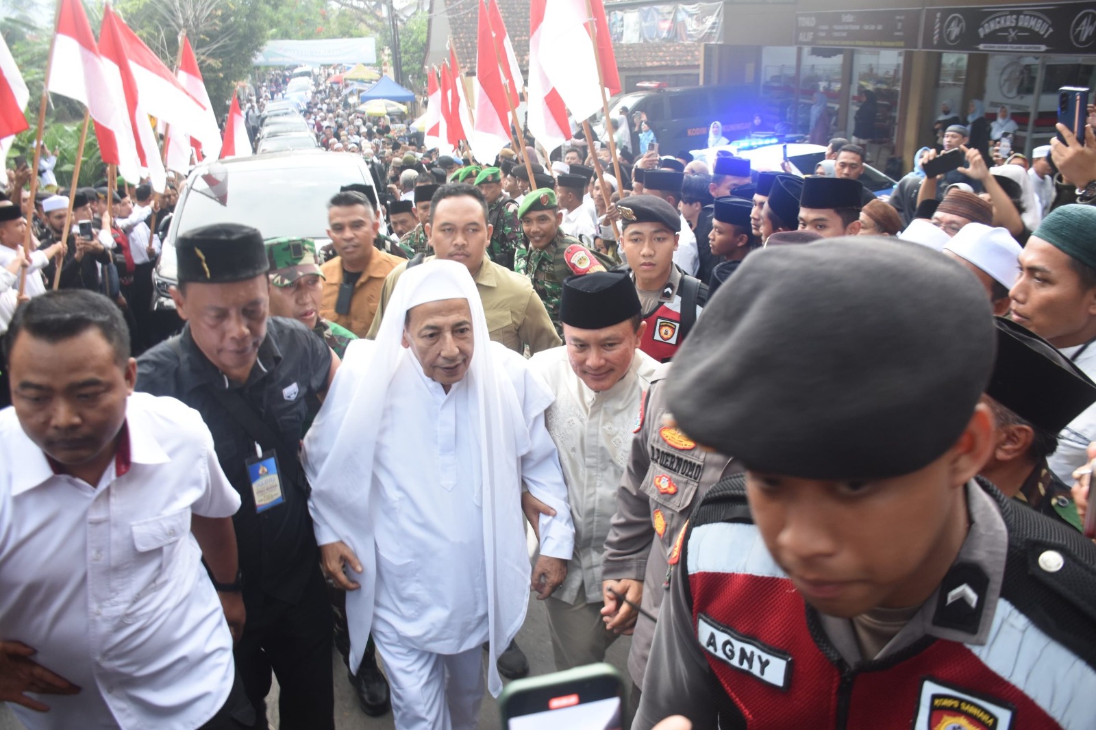 Usai pertemuan di Pendopo, Habib Luthfi dan Bupati Kuningan bersama jajaran pejabat daerah—termasuk Wakil Bupati, unsur Forkopimda, Ketua TP PKK, serta para asisten daerah—menuju lokasi haul. Ribuan jamaah tampak telah memadati area Winduhaji untuk mengikuti kegiatan keagamaan tersebut.