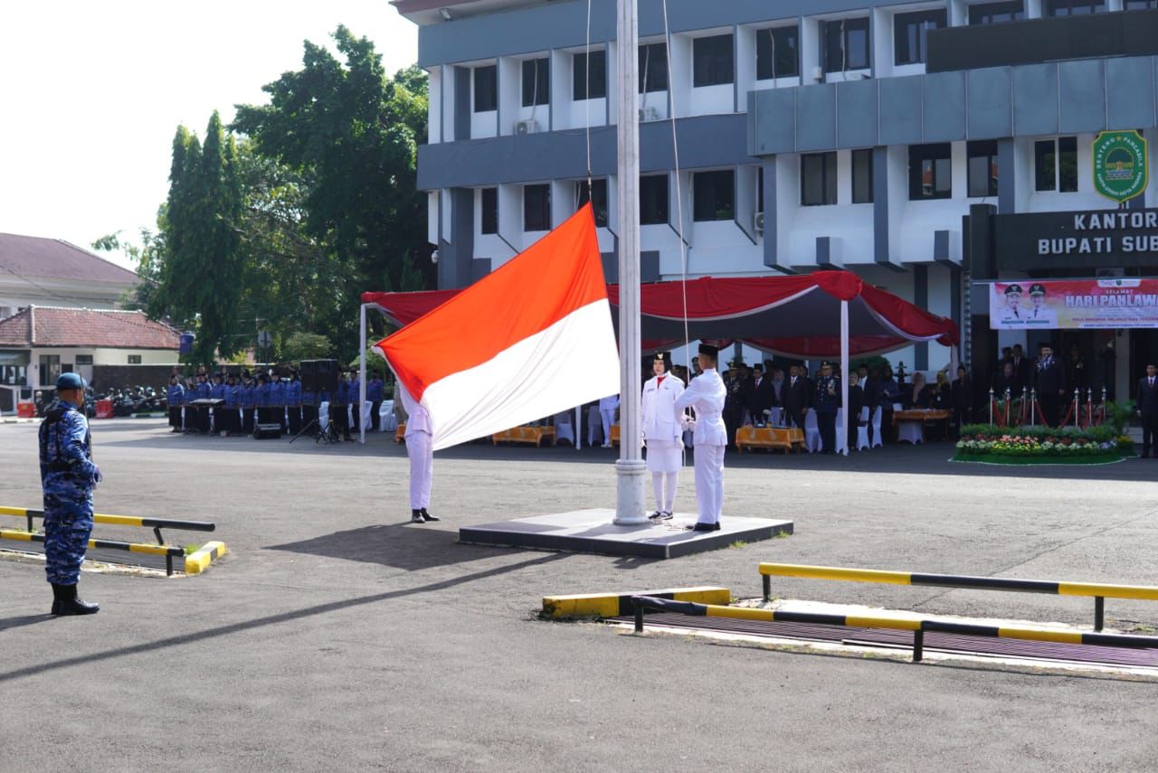 Upacara berlangsung khidmat dan penuh makna, dihadiri oleh Wakil Bupati Subang, Sekretaris Daerah, para Asisten Daerah, Kepala OPD, serta Kepala Bagian di lingkungan Sekretariat Daerah Kabupaten Subang.