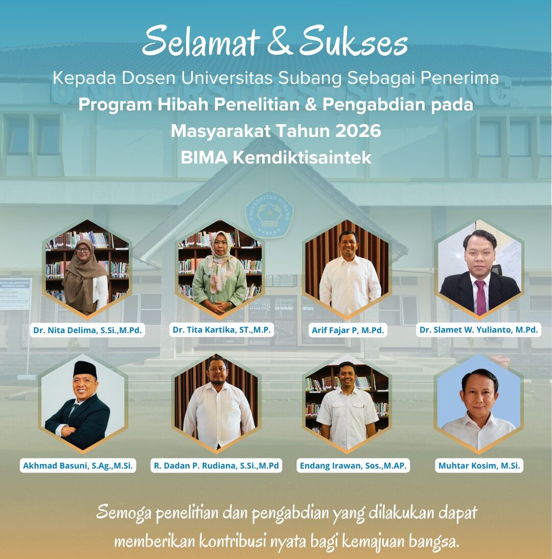 SUBANG.pesanjabar.com – 10 April 2026, Sejumlah dosen Universitas Subang berhasil meraih hibah penelitian dan pengabdian kepada masyarakat tahun 2026. Pencapaian ini menunjukkan komitmen kuat civitas akademika dalam mengembangkan ilmu pengetahuan sekaligus memberikan kontribusi nyata bagi masyarakat.