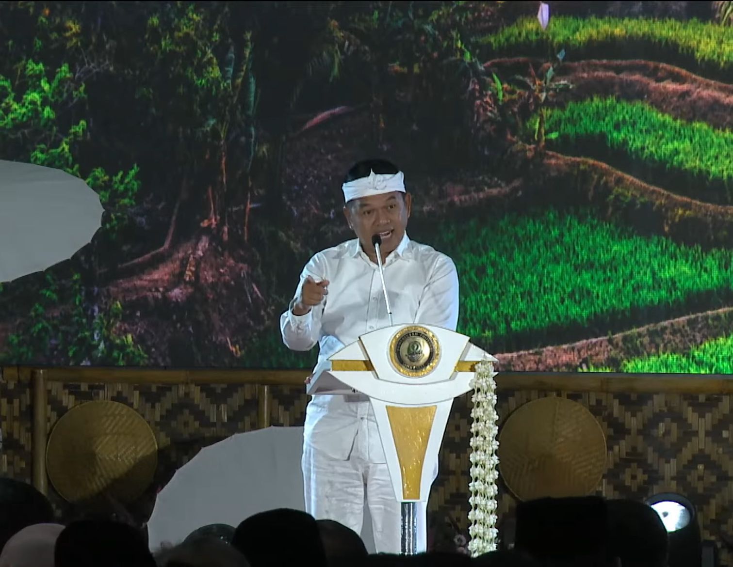 Agenda ini dihadiri oleh berbagai unsur penting, antara lain perwakilan Pemerintah Pusat, Wakil Menteri Dalam Negeri, DPR RI, DPD RI, pimpinan dan anggota DPRD Provinsi Jawa Barat, serta seluruh kepala daerah se-Jawa Barat. Selain itu, hadir pula Forkopimda, instansi vertikal, BUMD/BUMN, mitra CSR, para rektor perguruan tinggi, organisasi kemasyarakatan, serta perwakilan keraton dan tokoh masyarakat.