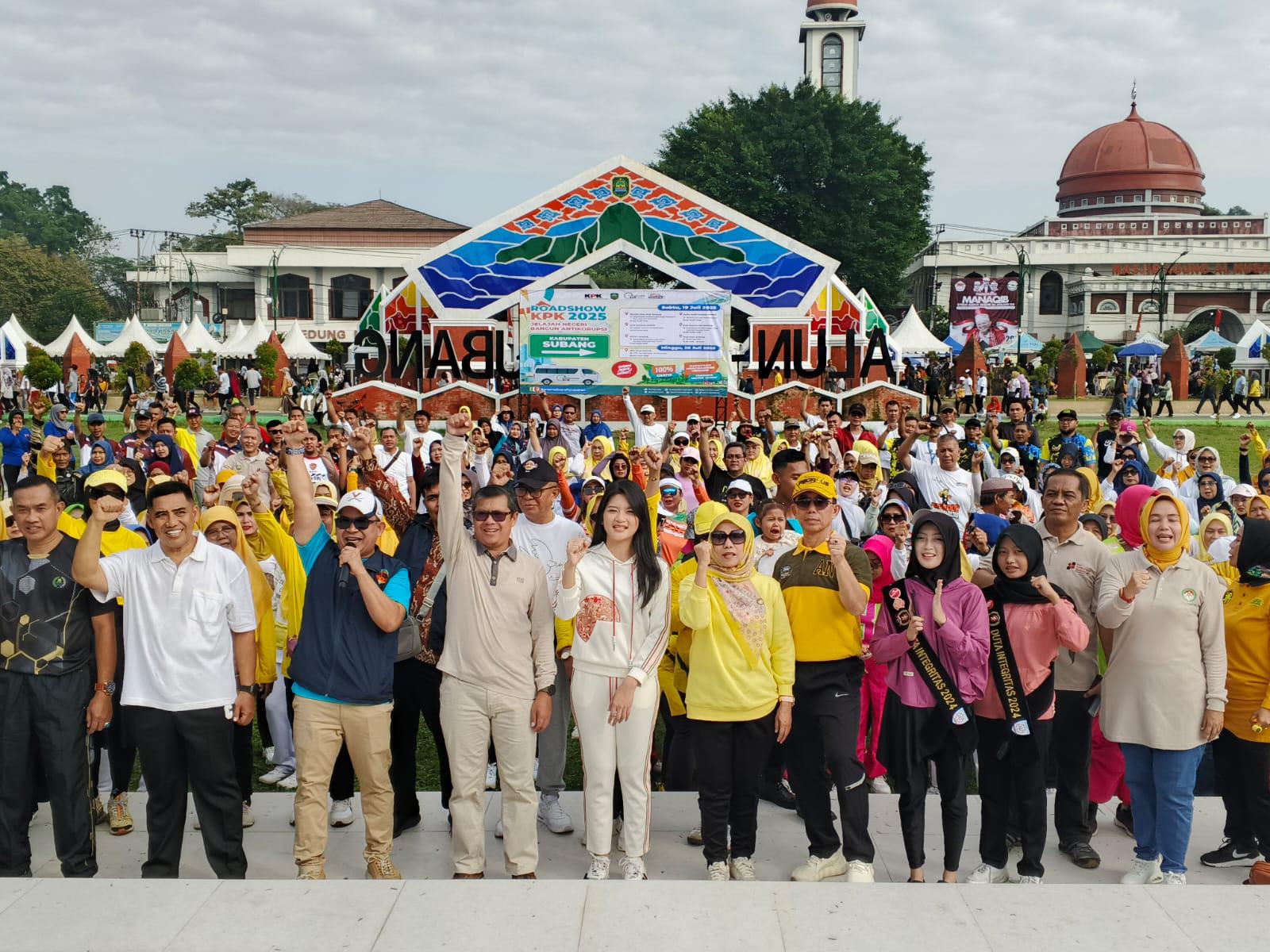 Wakil Bupati Subang, Agus Masykur Rosyadi (Kang Akur) menghadiri puncak acara Roadshow KPK 2025 – Jelajah Negeri Bangun Antikorupsi yang berlangsung di Alun-Alun Subang pada Minggu (20/7/2025).