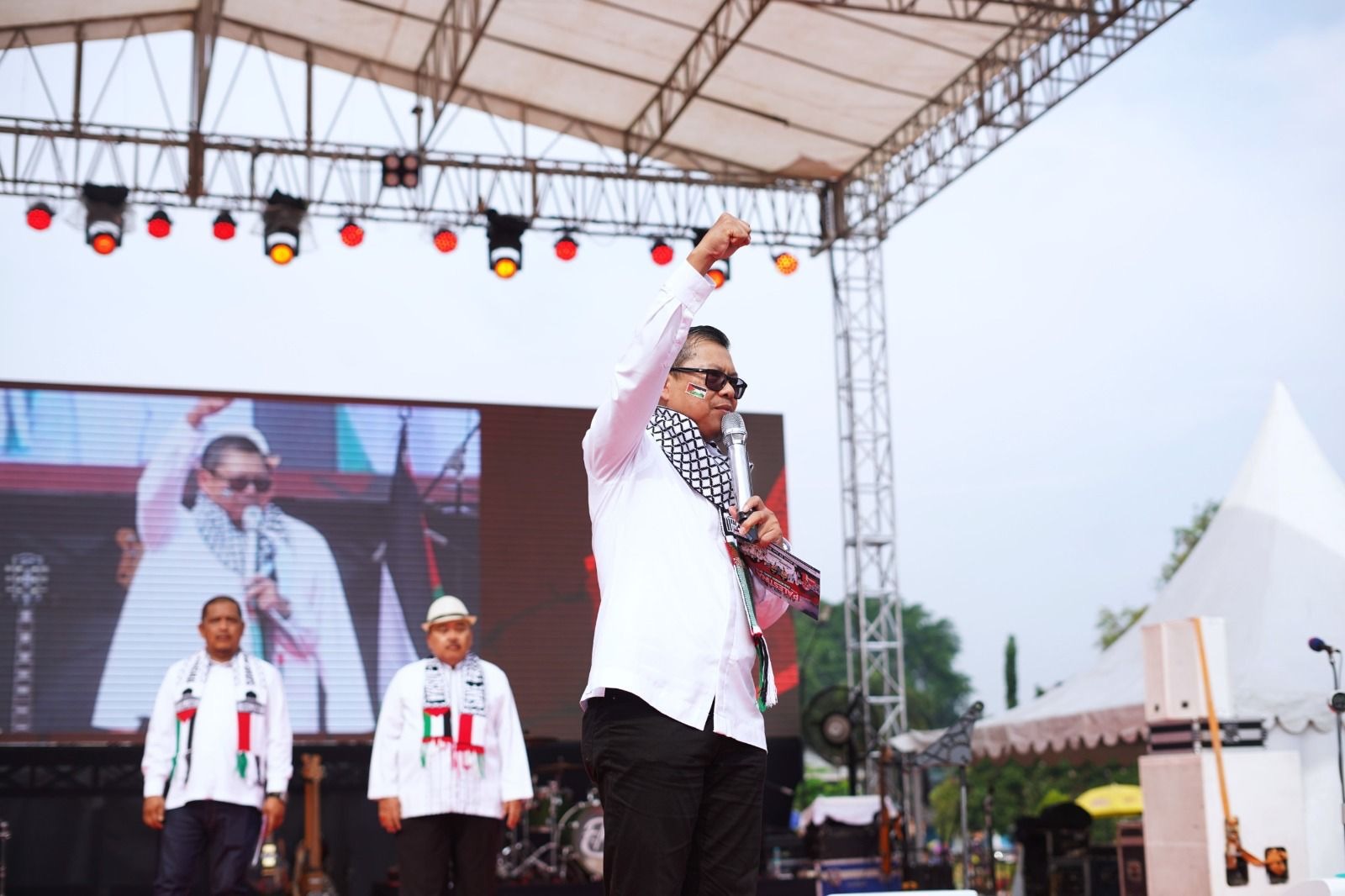 “Mari kita serukan doa terbaik, semoga Palestina segera merdeka. Kita semua mendukung perjuangan mereka,” serunya.