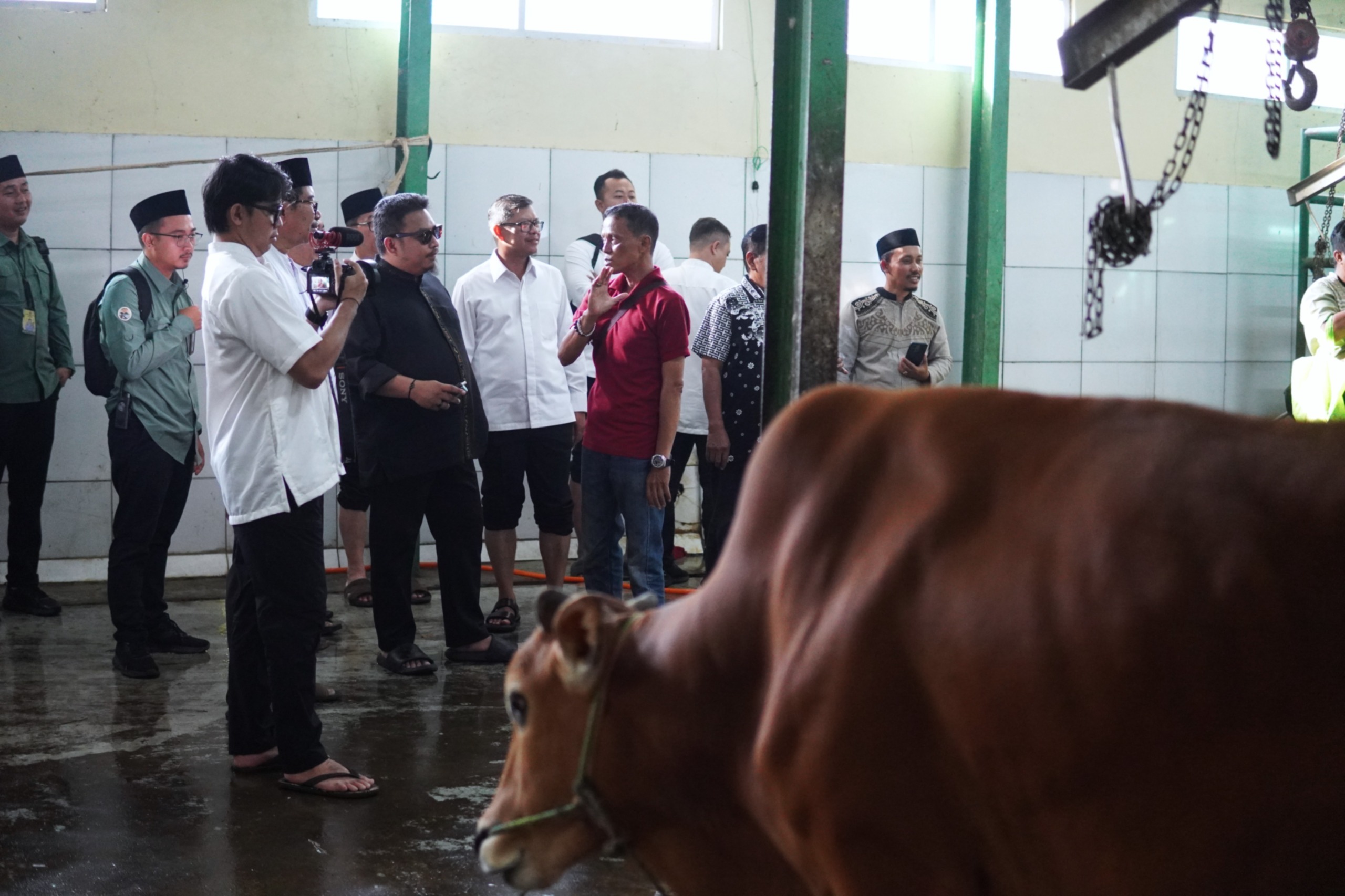 SUBANG, Pesanjabar.com – Bupati Subang Reynaldy Putra Andita didampingi Wakil Bupati Agus Masykur Rosyadi turut menyaksikan secara langsung penyembelihan hewan kurban di Rumah Potong Hewan (RPH) Cigadung pada Jumat (6/6/2025), sebagai bagian dari perayaan Iduladha 1446 H.