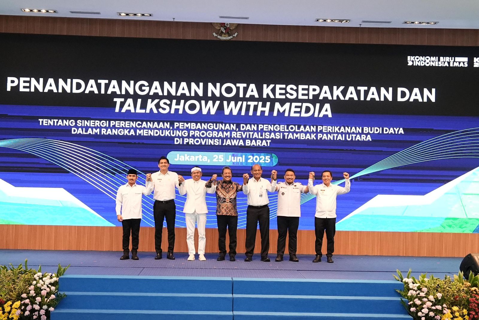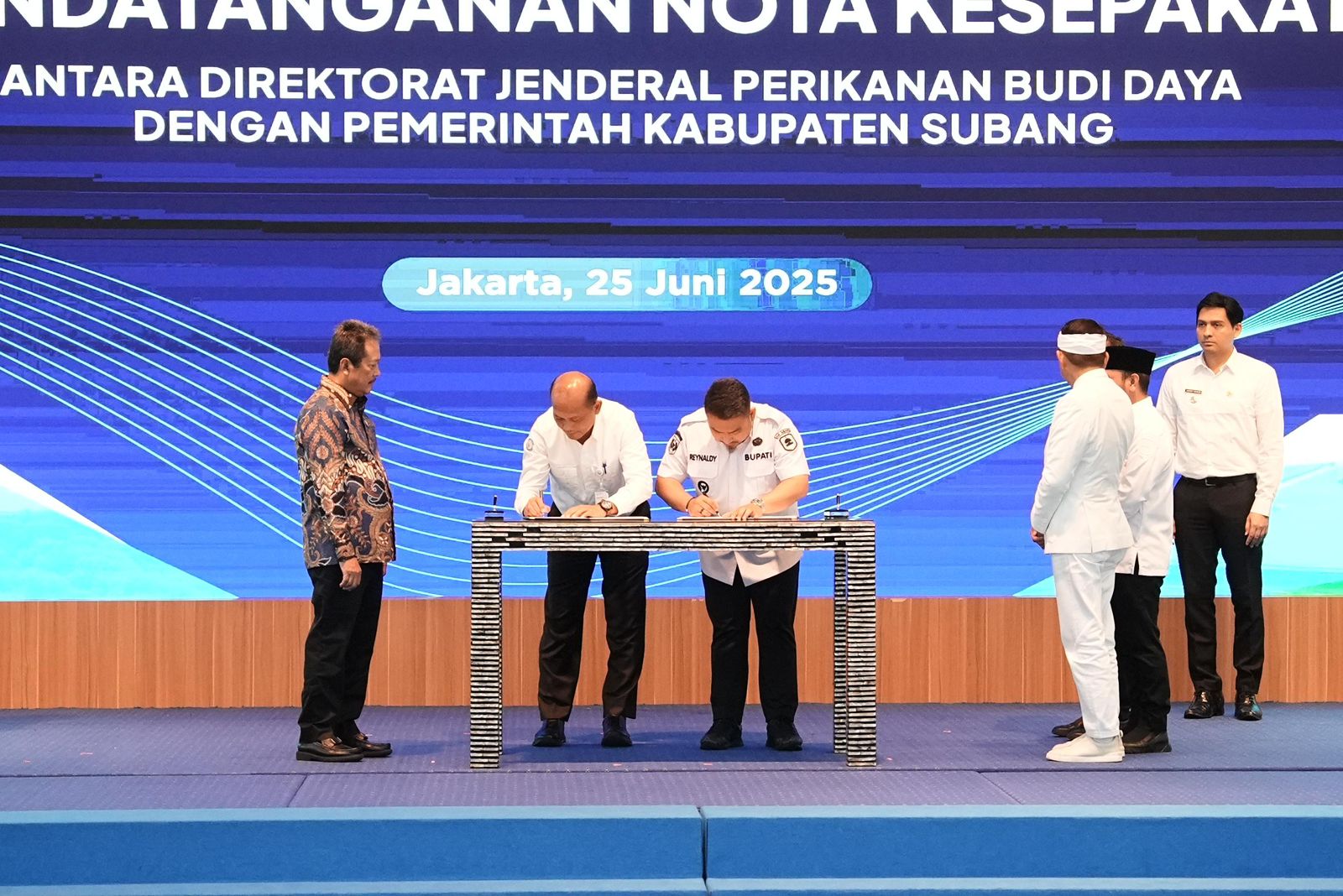 JAKARTA. pesanjabar.com Dalam rangka mendukung percepatan revitalisasi tambak di kawasan Pantura Jawa Barat, Bupati Subang Reynaldy Putra Andita (Kang Rey) menandatangani Nota Kesepakatan dengan Kementerian Kelautan dan Perikanan RI. Penandatanganan dilakukan di Jakarta, Rabu (25/6/2025), bersamaan dengan kegiatan talkshow nasional.