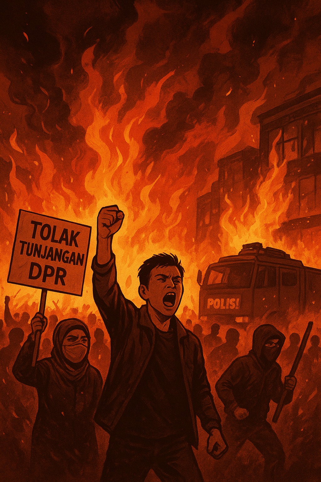REDAKSI.pesanjabar.com – Pendahuluan. Kerusuhan besar melanda Indonesia pada akhir Agustus 2025. Awalnya, aksi mahasiswa menolak kebijakan tunjangan hunian DPR berubah menjadi gelombang kekerasan: bentrokan, pembakaran gedung, penjarahan, hingga runtuhnya rasa aman di kota-kota besar.