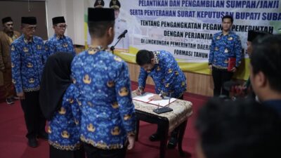 PURWAKARTA.pesanjabar.com – Suasana penuh semangat menyelimuti Pendopo Pemkab Purwakarta pada Rabu (24/9/2025). Sebanyak 47 putra-putri terbaik Purwakarta resmi dilantik sebagai Pegawai Pemerintah dengan Perjanjian Kerja (PPPK) Tahap II Formasi Tahun 2024. Mereka terdiri dari tenaga kesehatan, tenaga pendidik, hingga tenaga teknis yang kini sah mengemban amanah baru dengan menerima Surat Keputusan (SK) pengangkatan.
