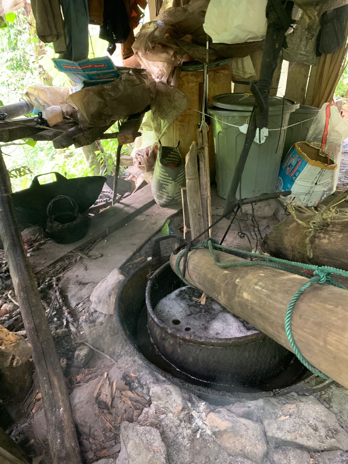 “ Setelah dari menyadap air nira tersebut, airnya itu di asap di lodong, lalu di masak hingga menjadi kental dan warnanya agak kemerahan, setelah itu di cetak pake cetakan bambu,” tambahnya