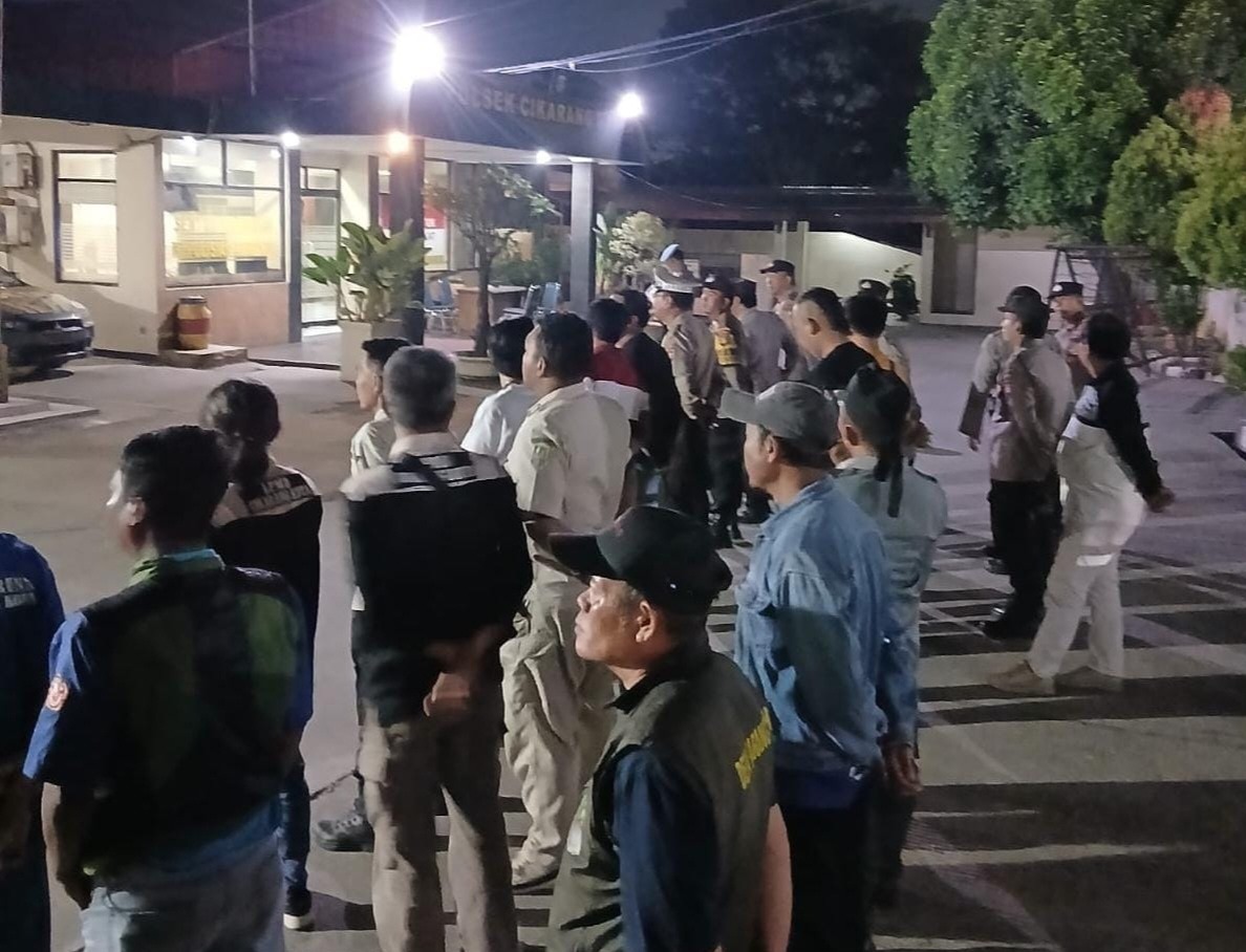 Apel patroli malam digelar di Halaman Polsek Cikarang Utara dengan melibatkan Linmas, TNI-Polri, dan Satpol PP sebagai upaya menjaga keamanan serta mencegah potensi tawuran pelajar.