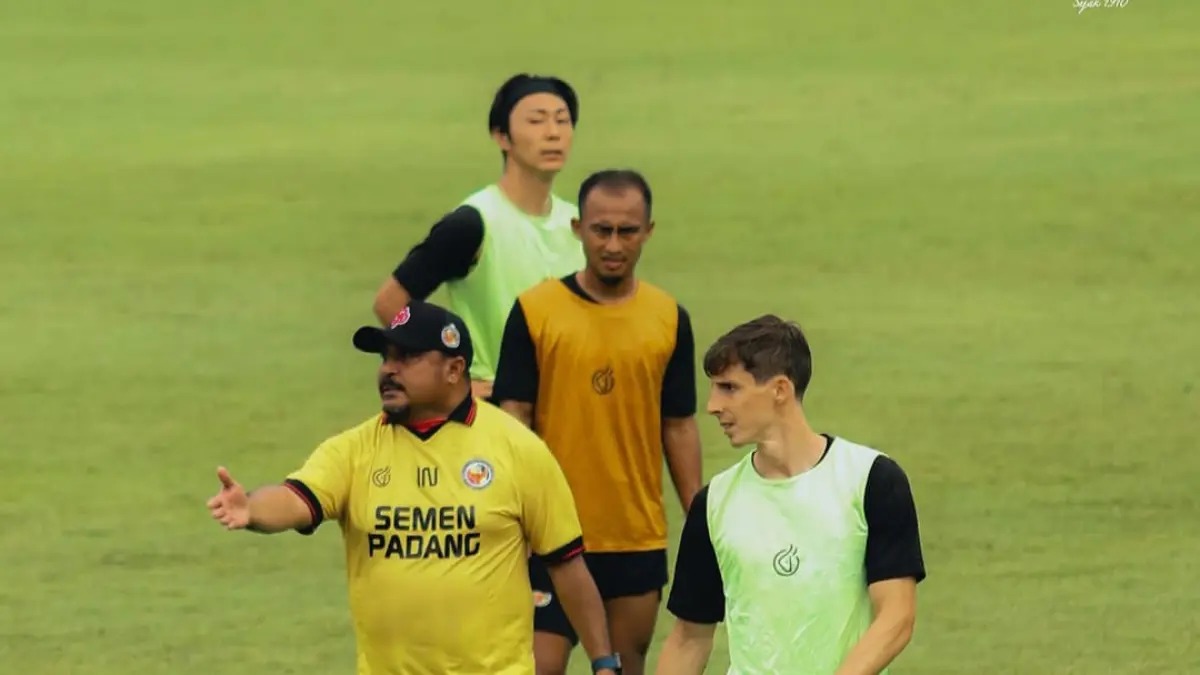 Pelatih Imran Nahumarury tampak tengah memberikan arahan kepada para pemain Semen Padang FC dalam sebuah sesi, sebagaimana terlihat dari unggahan di Instagram resmi klub.