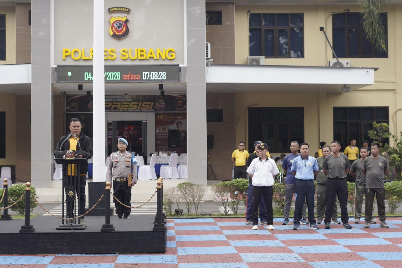 SUBANG.pesanjabar.com – Dalam rangka memperingati Hari Keselamatan dan Kesehatan Kerja (K3) Sedunia, Polres Subang menggelar apel pasukan dan kegiatan olahraga bersama berupa senam di halaman Mapolres Subang, Selasa (28/04/2026).