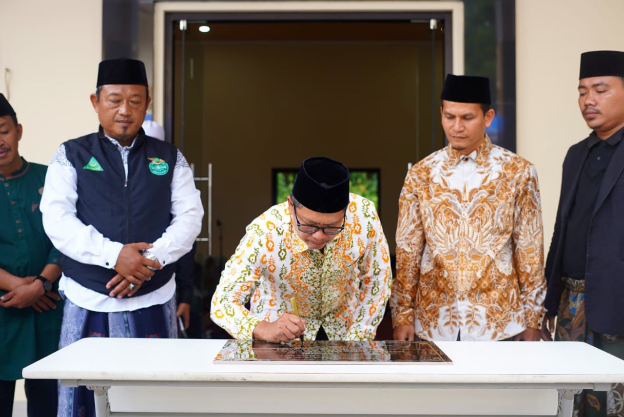 SUBANG. pesanjabar.com* Kang Akur, sapaan akrab Wakil Bupati Subang H. Agus Masykur Rosyadi, hadir langsung meresmikan Ponpes dan SMPIT Darul Qur’an Al-Musadadiyah di Aula Pesantren Wanakerta, Purwadadi, Sabtu (28/06/2025). Simbolisasi peresmian dilakukan melalui pengguntingan pita, disusul lantunan shalawat yang menggema dari para hadirin. Dalam sambutannya, Kang Akur menyampaikan bahwa kehadirannya merupakan bentuk dukungan penuh dari pemerintah daerah terhadap lembaga pendidikan Islam. Ia menekankan pentingnya peran strategis pesantren dalam membangun masyarakat yang berkualitas secara spiritual dan intelektual.
