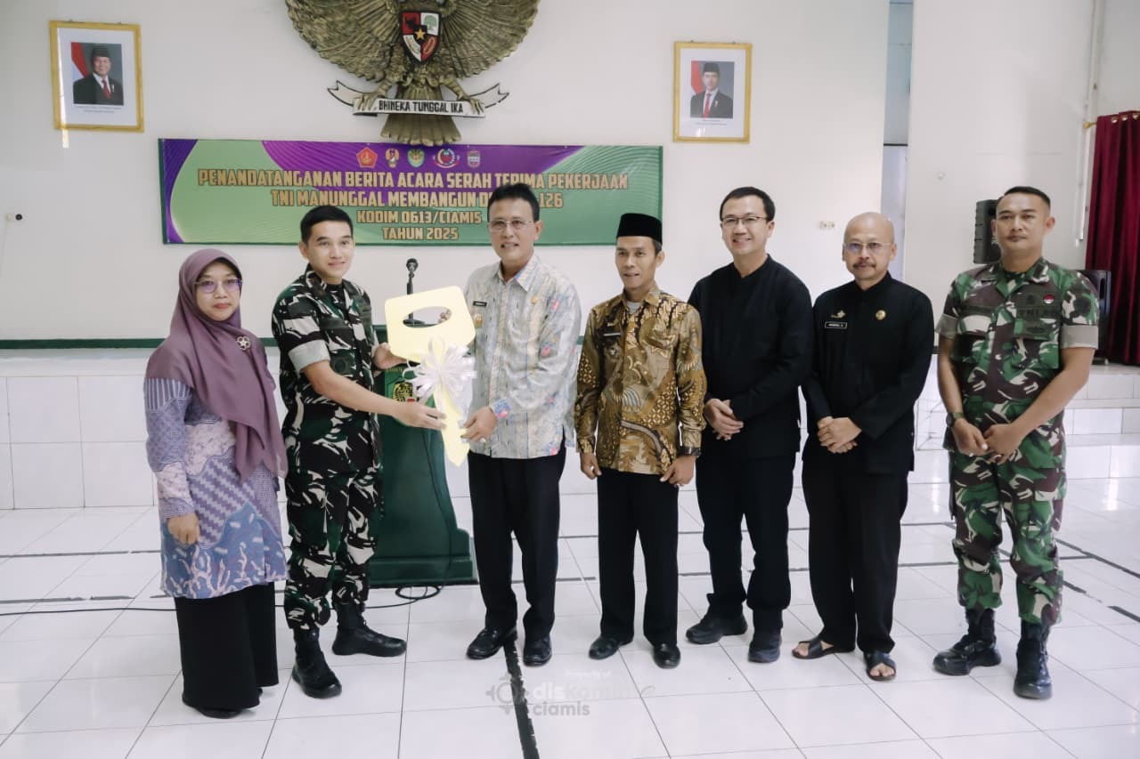 CIAMIS.pesanjabar.com – Sinergi antara Pemerintah Kabupaten Ciamis dan TNI kembali terlihat dalam upaya mempercepat pembangunan daerah melalui program TNI Manunggal Membangun Desa (TMMD) ke-126. Program tersebut resmi ditutup dengan penandatanganan Berita Acara Serah Terima Pekerjaan oleh Bupati Ciamis, Herdiat Sunarya, bersama Kodim 0613 Ciamis di Aula Makodim pada Jumat (10/04/2026).