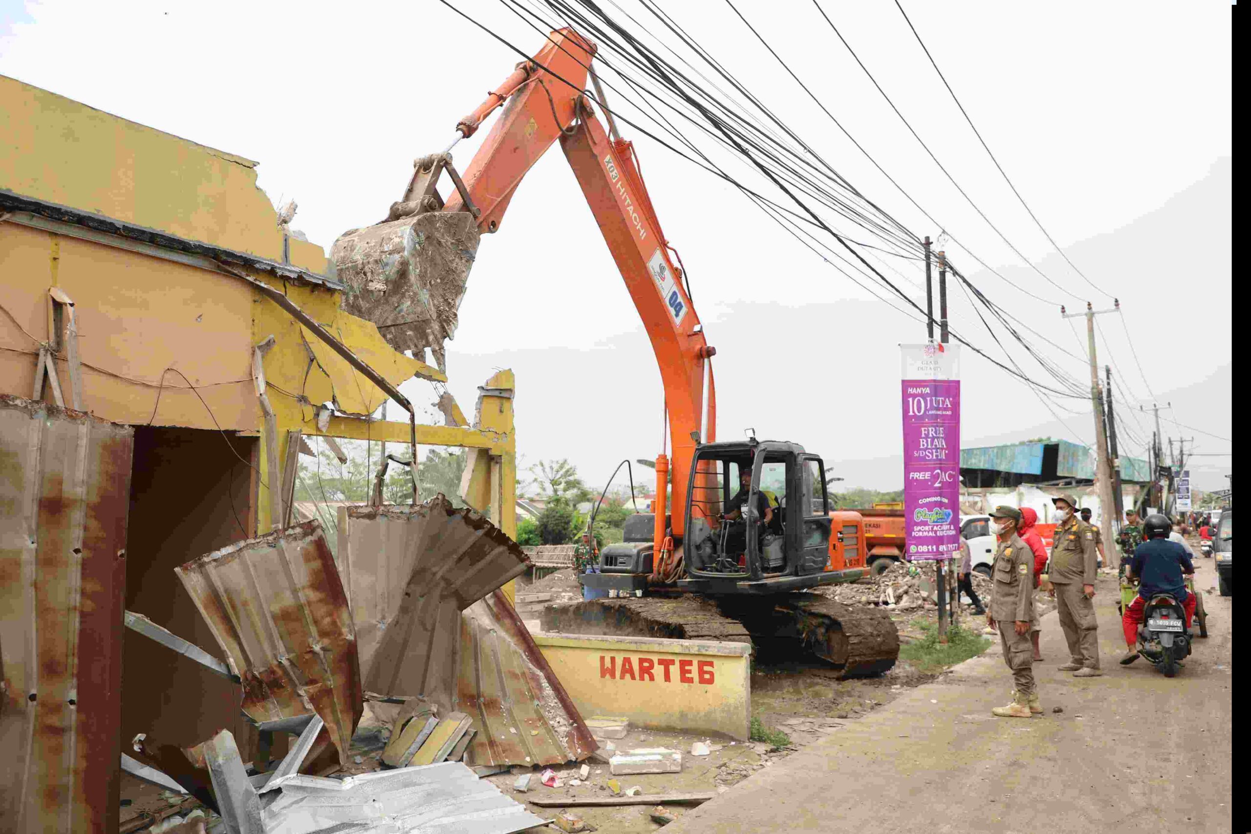 “Penertiban hari ini berjalan dengan aman, lancar, dan kondusif. Tidak ada penolakan dari warga, bahkan sebagian besar sudah membongkar bangunannya sendiri,” jelasnya.