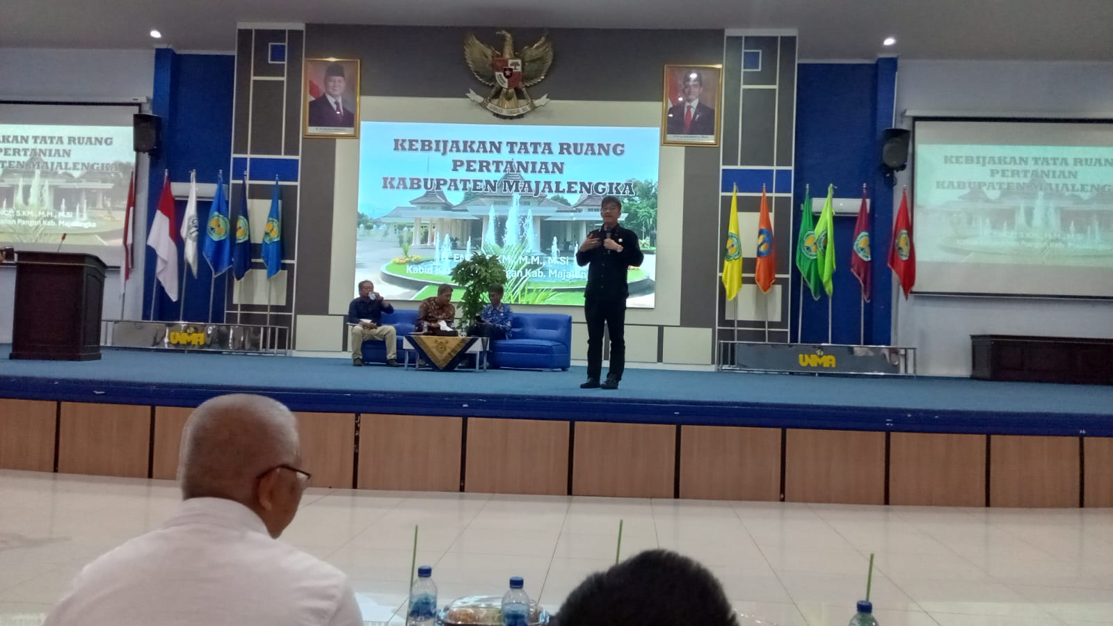 Hal itu terbukti dengan salahsatu upayanya untuk membahasnya melalui seminar dengan tema :”Strategi Kolaborasi Membangun Ketahanan Pangan Kabupaten Majalengka”, bertempat di ruang auditorium Universitas Majalengka, Senin (22/12/2025).