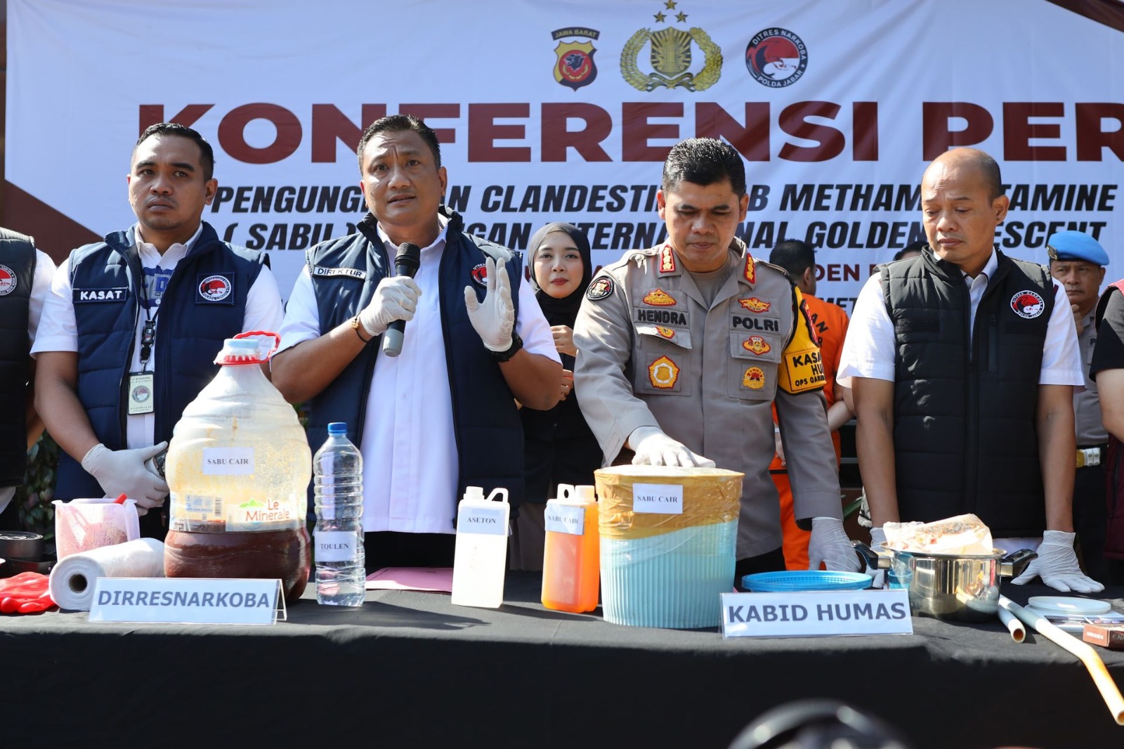 Kombes Hendra menyebutkan, berdasarkan hasil penyidikan awal, laboratorium tersebut merupakan bagian dari jaringan narkotika internasional bernama “Golden Crescent”, yang diketahui beroperasi di kawasan Timur Tengah dan Asia Selatan seperti Iran, Afghanistan, dan Pakistan.