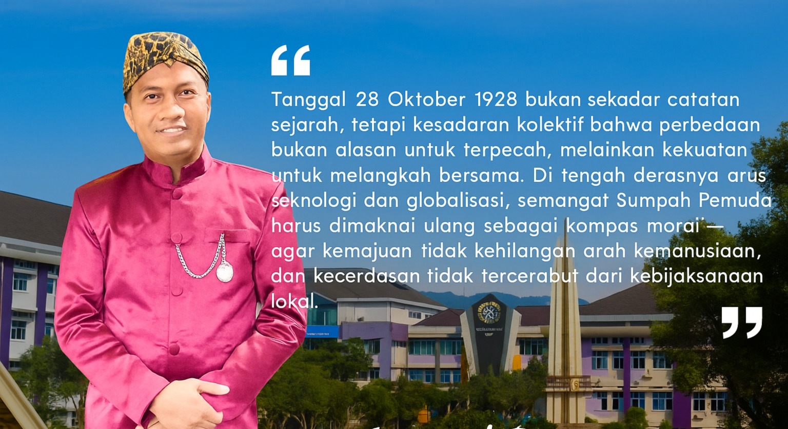 Namun sembilan puluh tujuh tahun kemudian, tantangan yang dihadapi generasi muda jauh berbeda. Dunia kini berada dalam pusaran disrupsi teknologi, krisis ekologi, dan perubahan sosial yang serba cepat. Generasi kini dilanda pada satu kebingungan yang membuncah, yaitu tentang sebuah pilihan yang harus diambil. Dengan berbagai fasilitas yang telah tersedia, mereka bukan saja mudah mendapatkan segala yang diinginkan, baik informasi maupun pengetahuan, akan tetapi, mereka semakin sulit memilih mana yang paling tepat untuk menjadi acuan hidup. Tanpa memahami tentang acuan mana yang harus dipilih, mereka terjebak dalam euphoria kemajuan teknologi yang serba artifisial dan membangun ilusi bagi mereka yang tidak cakap membacanya. Dalam konteks ini, semangat Sumpah Pemuda perlu dimaknai ulang sebagai kompas moral dalam pembangunan berkelanjutan — pembangunan yang tidak hanya mengejar pertumbuhan ekonomi, tetapi juga menjamin keberlanjutan sosial, budaya, dan lingkungan.