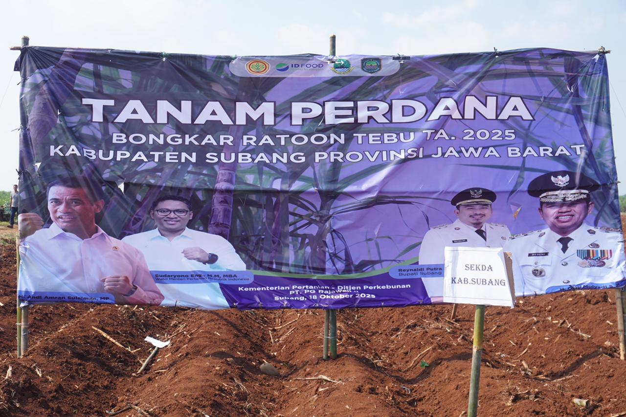 SUBANG.pesanjabar.com – Pemerintah Kabupaten Subang melalui Sekretaris Daerah (Sekda) H. Asep Nuroni, S.Sos., M.Si., menghadiri kegiatan Tanam Perdana Bongkar Ratoon di area perkebunan tebu PTPN Rajawali II Purwadadi, Sabtu (18/10/2025). Kegiatan ini diinisiasi Kementerian Pertanian RI melalui Direktorat Jenderal Perkebunan sebagai bagian dari program nasional menuju Swasembada Gula.