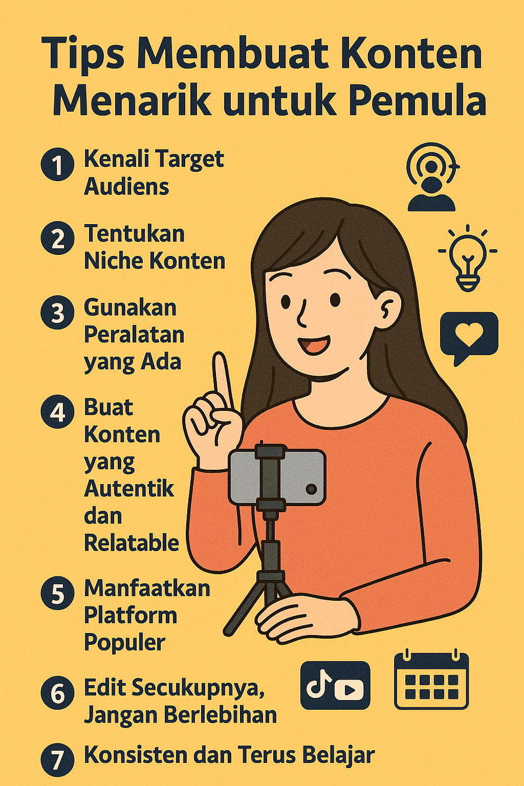 Berikut ini beberapa tips membuat konten menarik bagi pemula yang ingin memulai perjalanan sebagai konten kreator:
