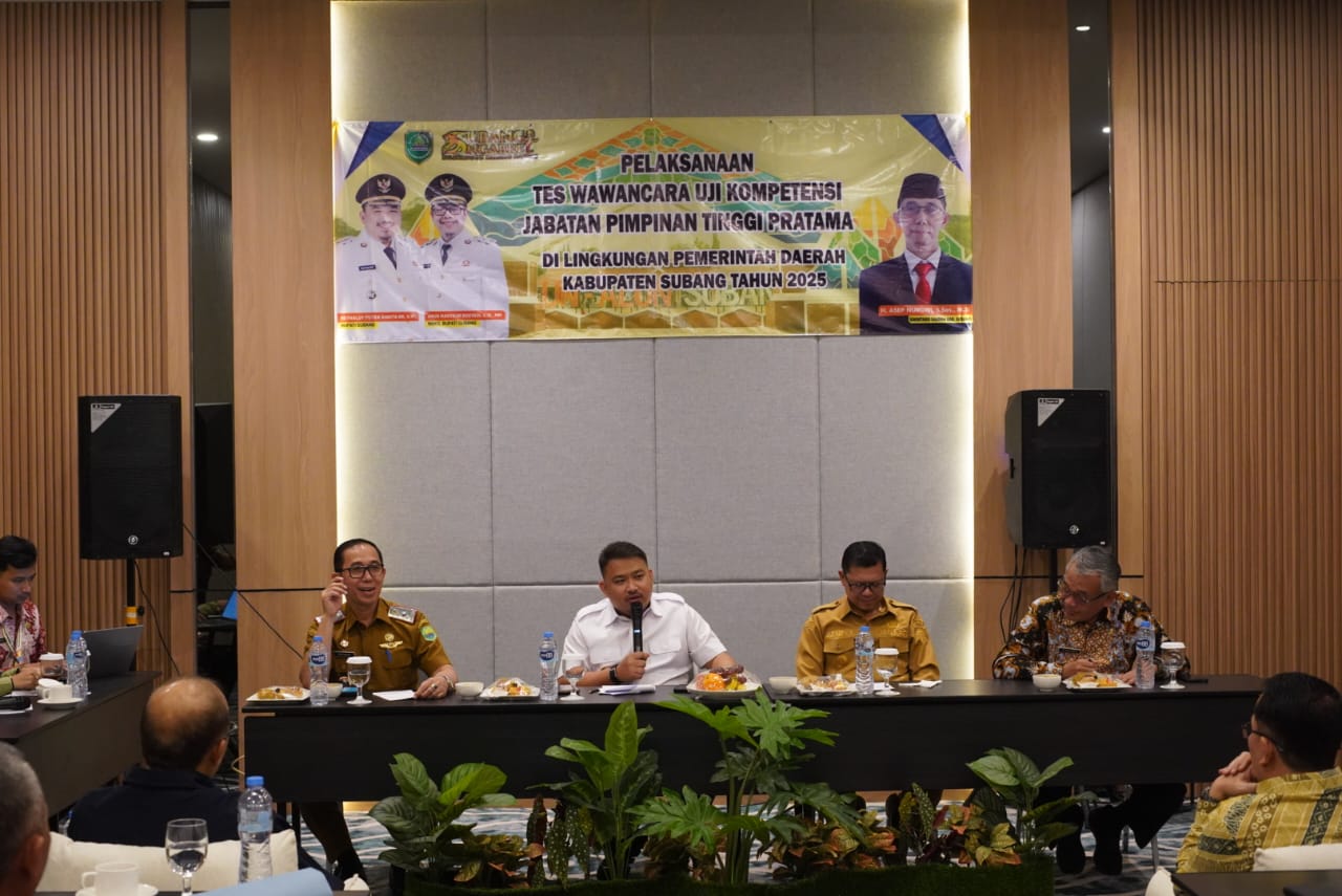 Bupati Subang, Reynaldy Putra Andita Budi Raemi, secara resmi membuka pelaksanaan Tes Wawancara Uji Kompetensi Jabatan Pimpinan Tinggi (JPT) Pratama di lingkungan Pemkab Subang, yang digelar di Laska Hotel, Ciater, Senin (4/8/2025).