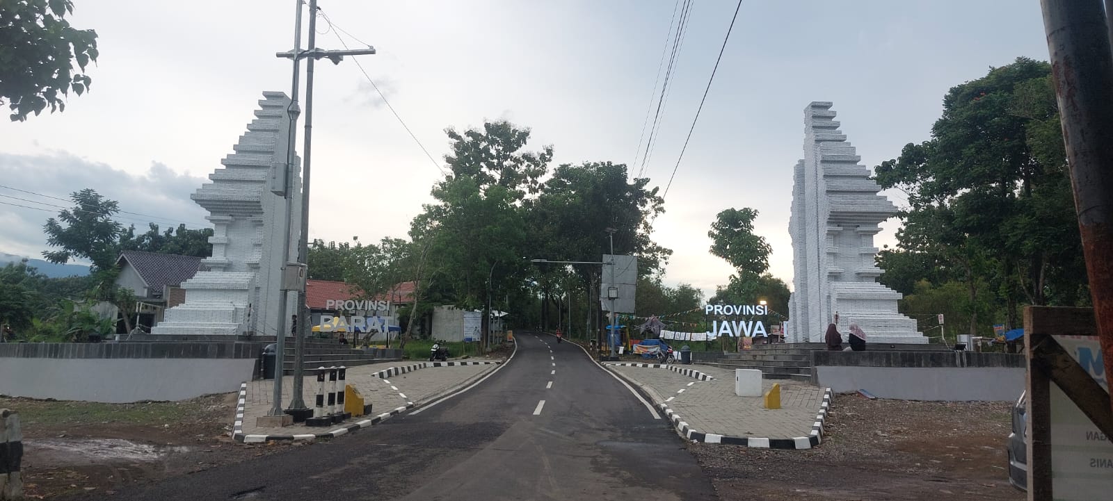 Dua bangunan tugu berbentuk kujang berdiri kokoh di sisi kiri dan kanan jalan, menyambut para pengguna jalan yang melintas di jalur penghubung antarprovinsi. Desainnya yang khas menjadikan tugu ini sebagai ikon visual yang mudah dikenali sekaligus mempertegas ciri khas Jawa Barat.