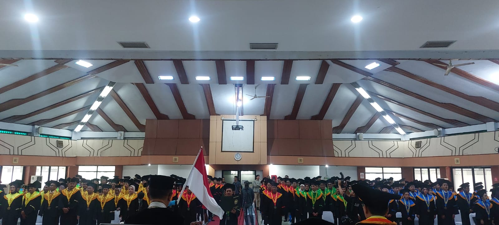 “Saya ucapkan selamat kepada seluruh wisudawan. Gelar akademik yang Saudara peroleh bukan hanya pengakuan formal, tetapi amanah akademik dan moral yang harus dijunjung tinggi,” ujar Rektor Komir Bastaman.