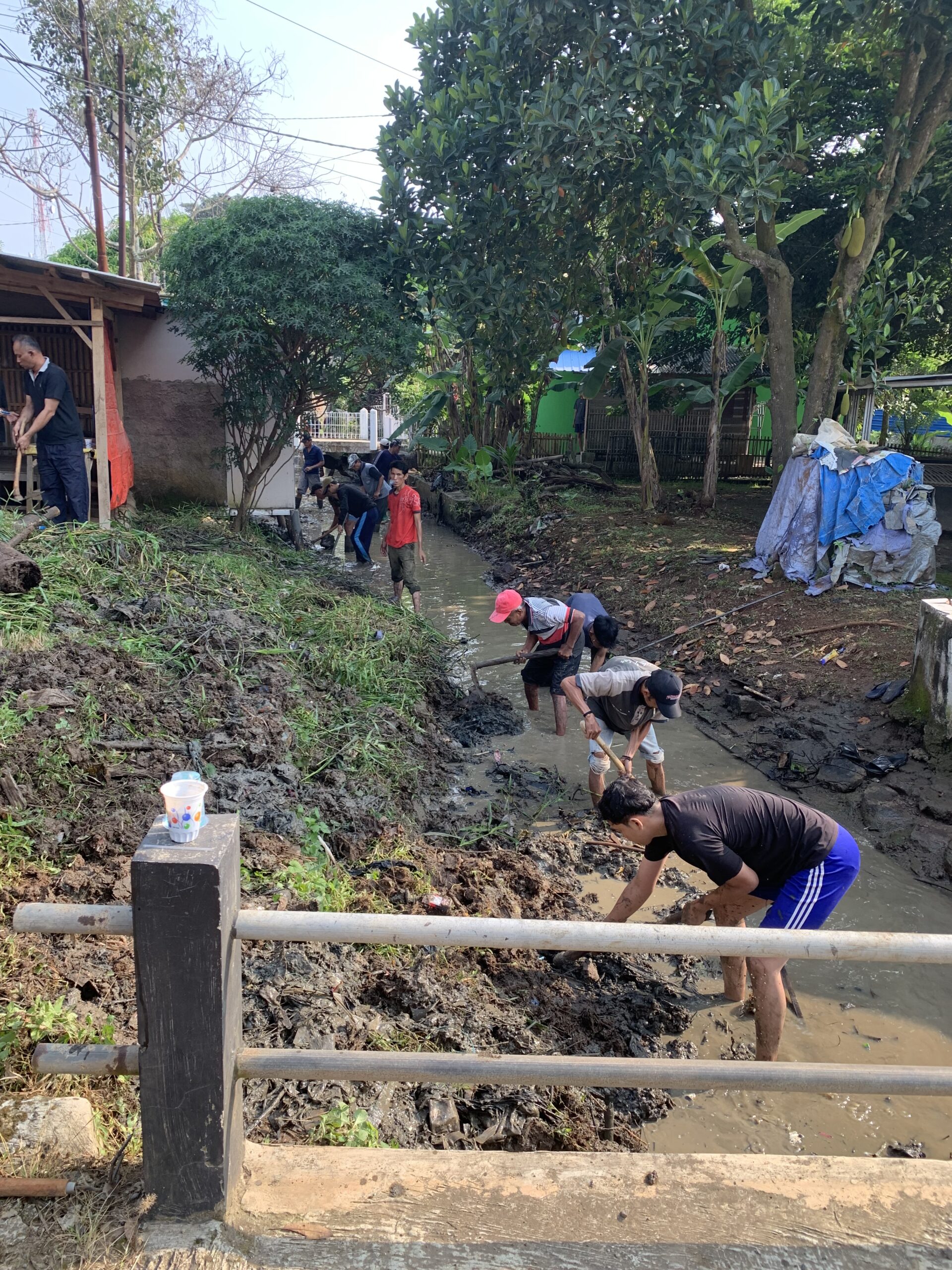 Dengan penuh semangat, warga menyusuri bantaran sungai sambil mengangkat sampah dan merapikan aliran air agar kembali lancar. Kegiatan ini dilakukan sebagai bentuk kepedulian terhadap lingkungan sekaligus upaya mencegah terjadinya banjir saat musim hujan.